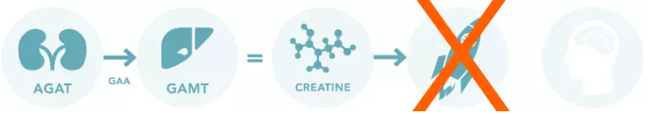 Due to a lack of the GAMT enzyme, patients with GAMT are unable to break down the GAA formed in the first step of creatine synthesis. This results in a buildup of guanidinoacetate (GAA) which is believed to be toxic to the brain at high levels.